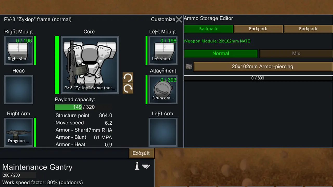 Combat Extended only! This interacts with the ammo storage mechanic from Exosuit Framework that is only active when playing with CE.
