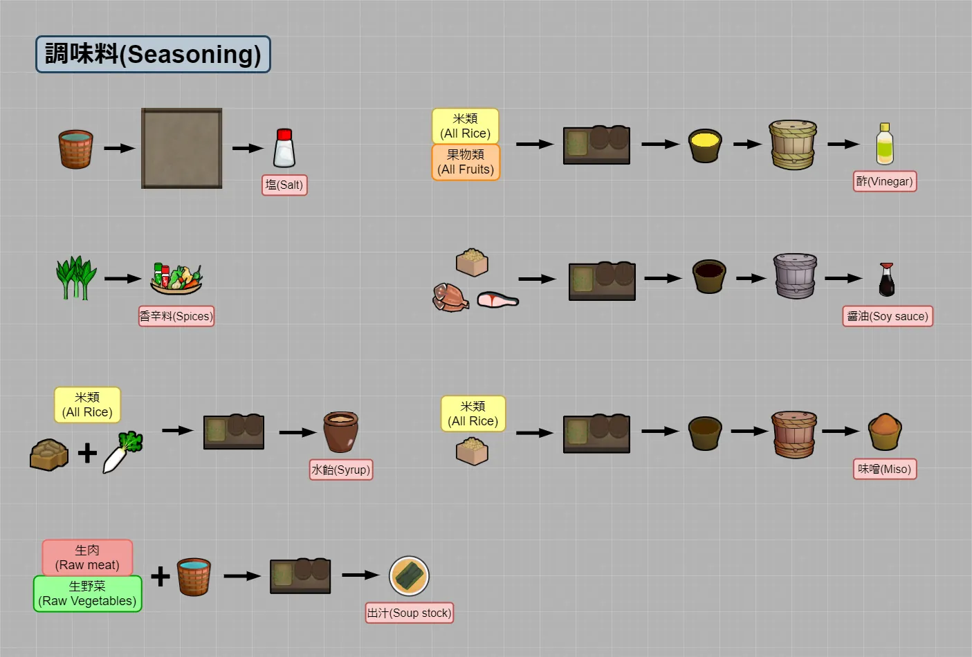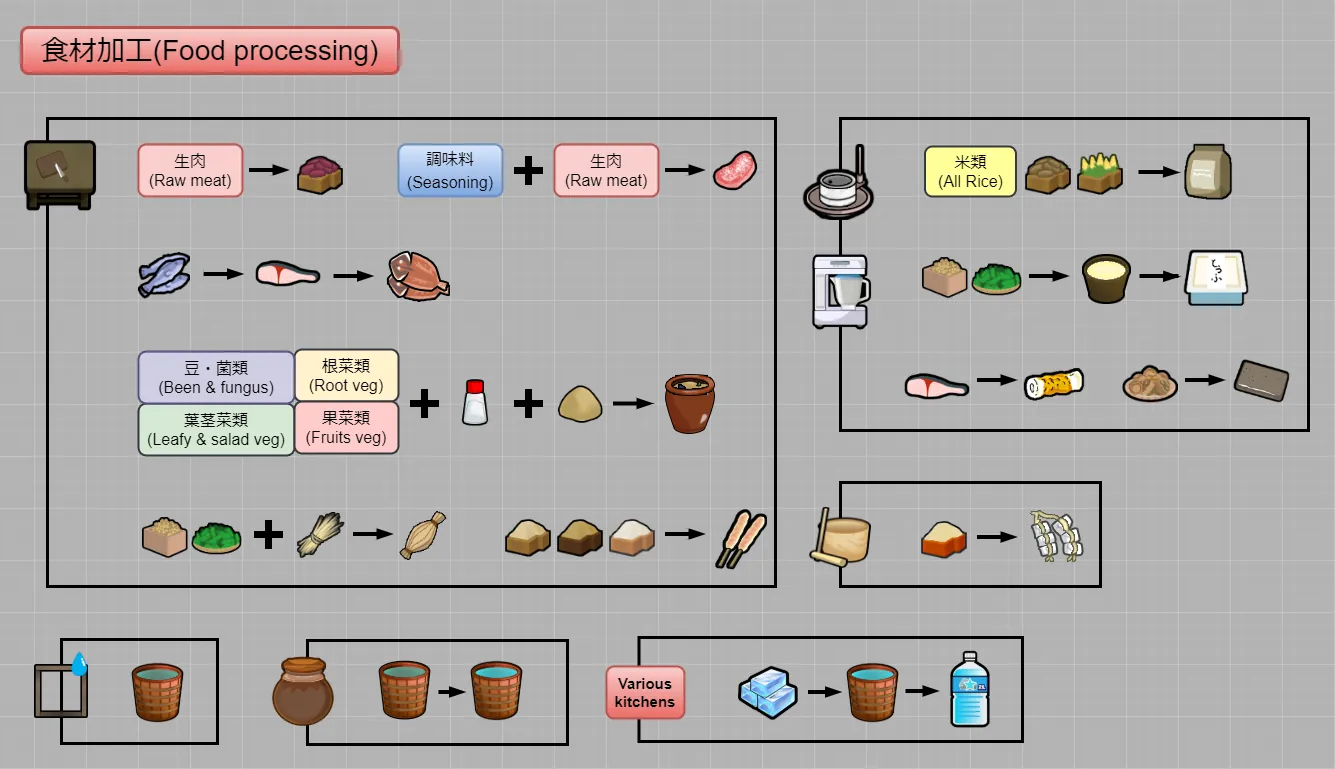 > For more information, please refer to Cooking, Seasoning, Ingredient Processing, Classification of Ingredients in the image chart above.