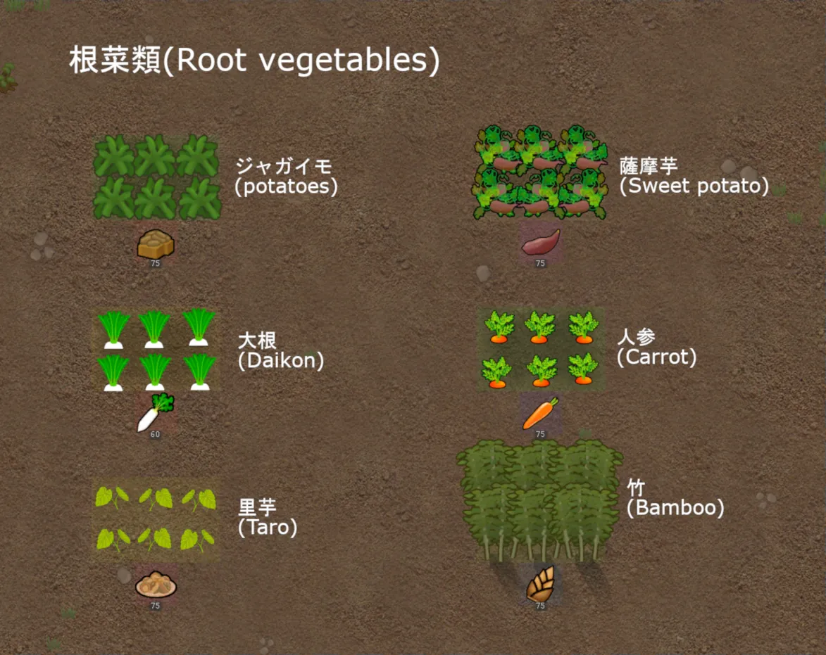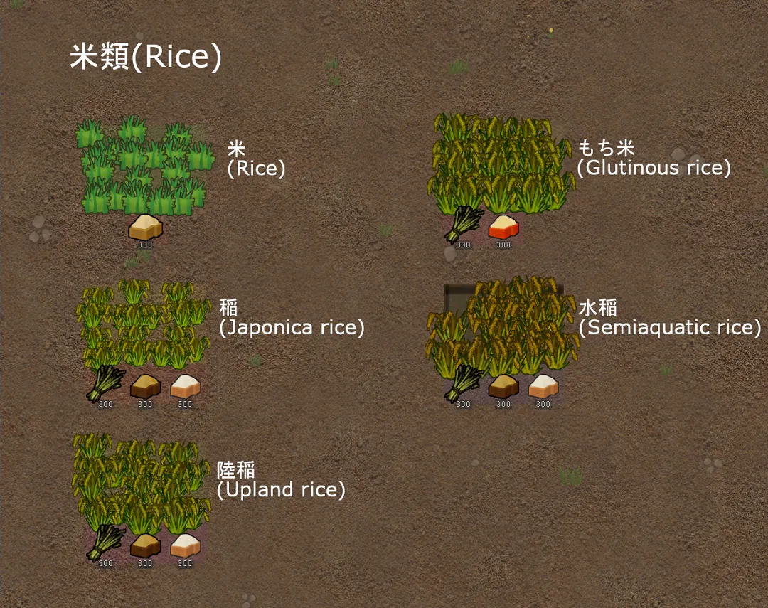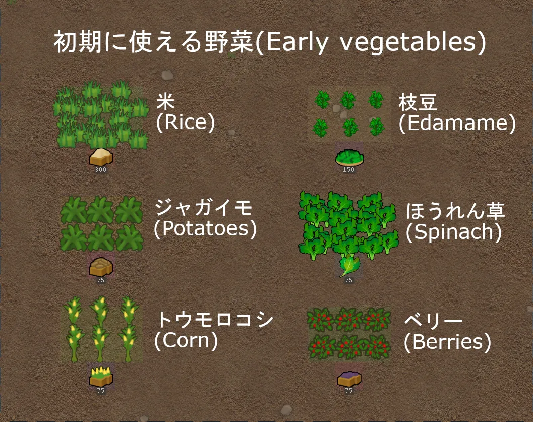 ・VGPやRimCuisine2のように自然に生える作物はありません。
