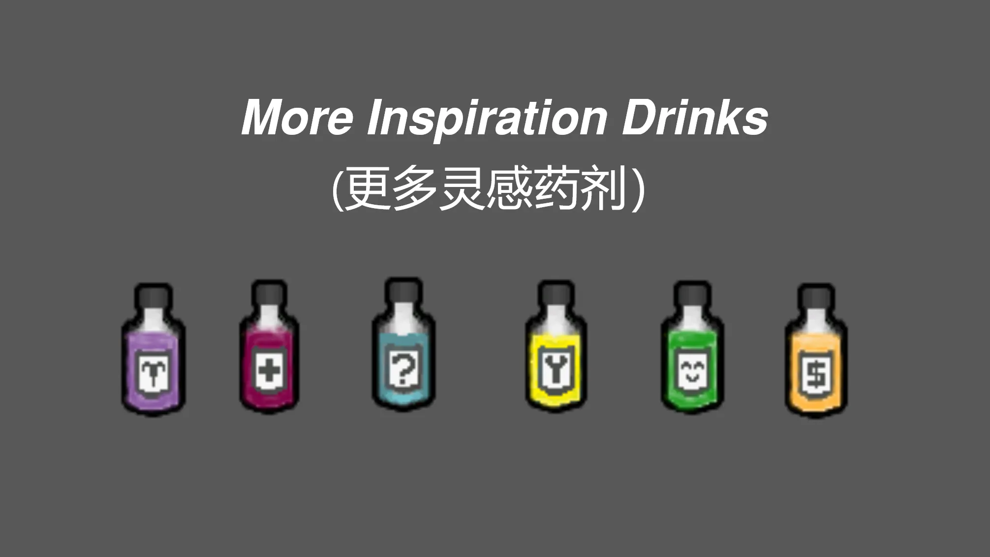 Added a series of Inspiration Drinks to match the balance of the original.After studying the technology, the colony will be able to use some rare and expensive materials to produce Inspiration Drinks, and the colonists who use them will gain corresponding inspiration.