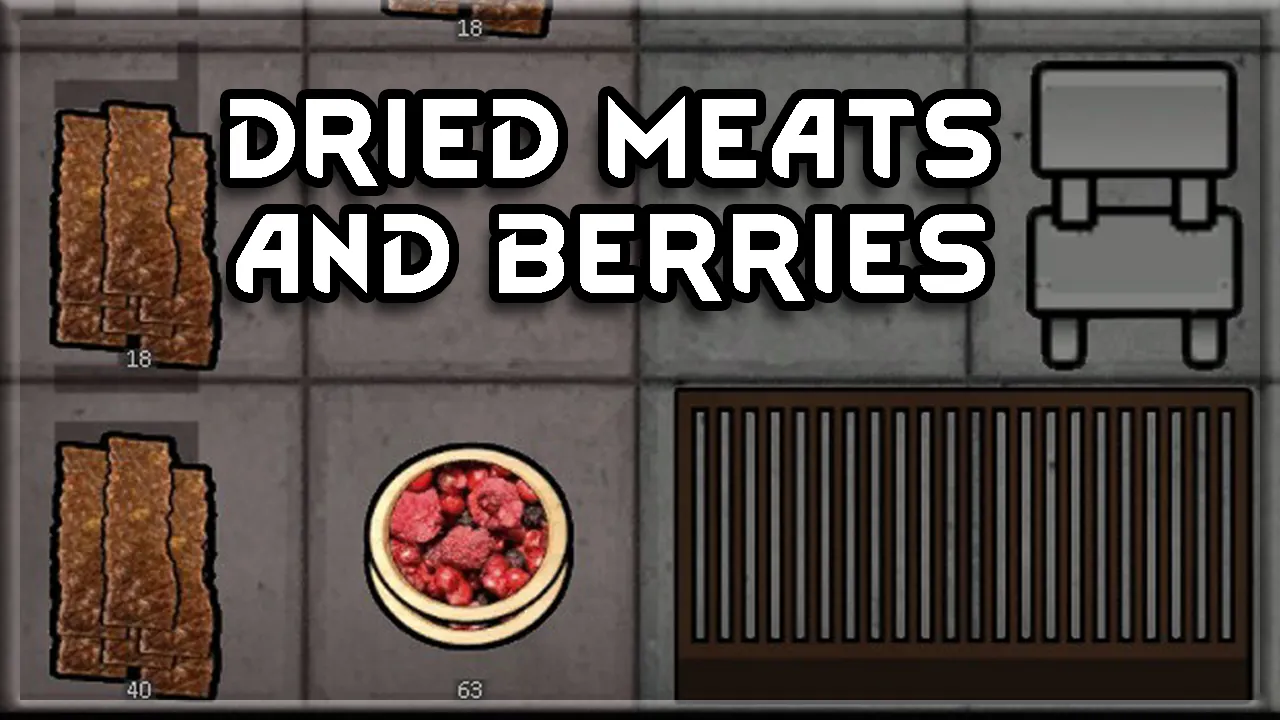 Adds a drying rack and the drying of meats and berries at any tech level.