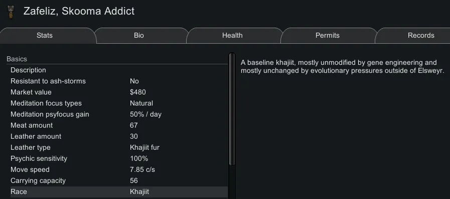 There's mods for every Elder Scrolls race except the Khajiit. Rimworld does however, have a cat people mod - [url=https://steamcommunity.com/sharedfiles/filedetails/?id=1541519487]Orassans by Diana (Kitty)[/url].