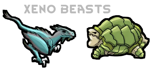 Fort turtle: The fortress turtle is a living citadel. Designed to moving bunker, this behemoth estimated to be created for protecting soldiers while Mechanoid invasion. Fort turtle has periodically harvestable shells. This shell furnishes material for military composite alloy. Reliable protector and strong porter, fort turtle will be your great companion.