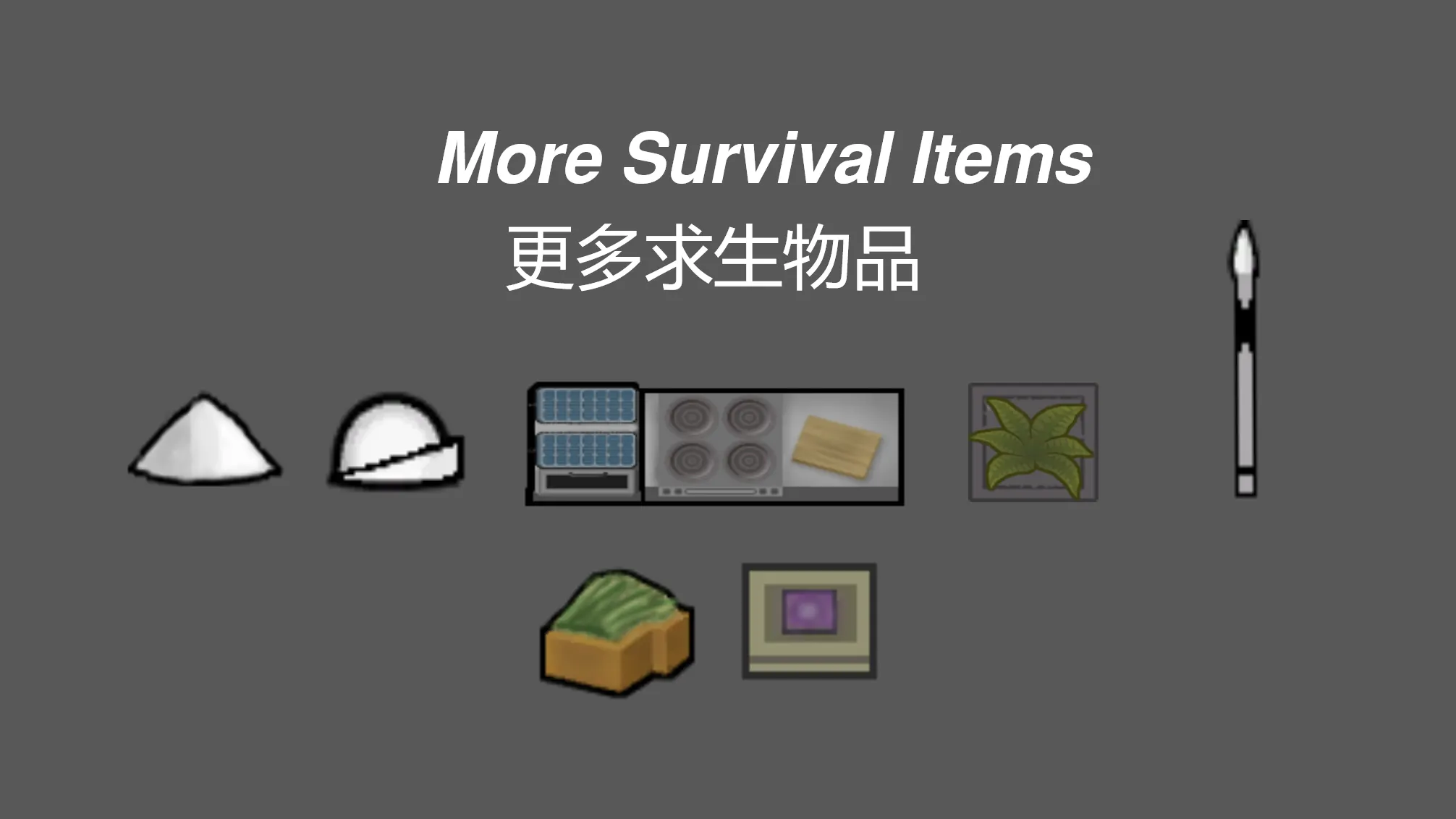 A range of survival equipment and buildings to help you survive in extreme conditions.Examples include fuel-free solar-powered stoves, easily preserved nutrient blocks, equipment tailored for extreme environments and fast-growing crops.