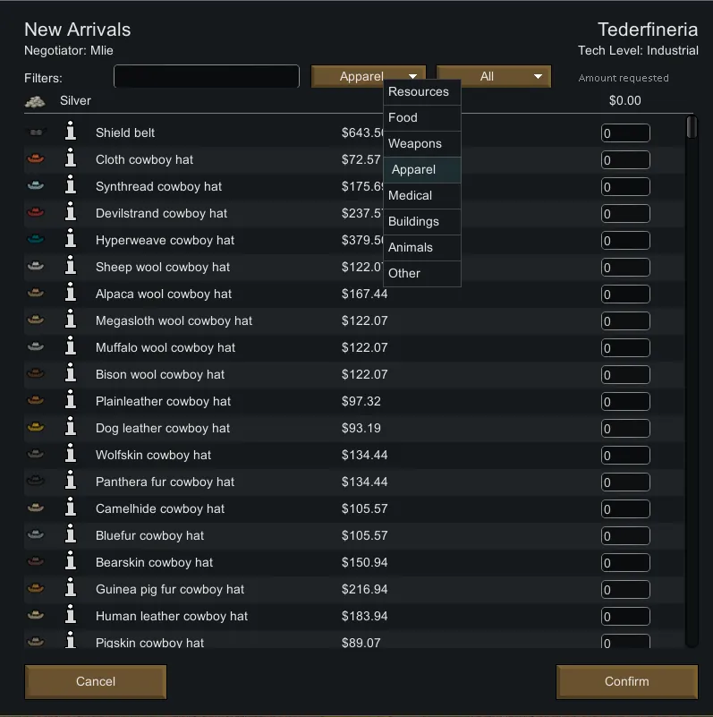 Of course, the price of the item you request will be marked up, and the farther the other faction's colony is from yours the steeper the price will be (ain't no free Prime shipping out here)! But on the bright side, now you don't have to wait for a random item stash quest to get your atomosomaniatic hands on those precious anti-grain warheads! Instead you can say, “Jeeves! Bring me six anti-grain warheads and a golden table. I want my colonists to dine with class while utterly obliterating any trespassers with nuke landmines scattered all around the map perimeter.”