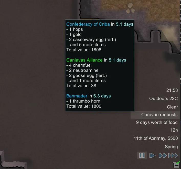 But be wary! If the caravan arrives at your colony and you don't got the muns, they may not be so happy with your colonists...