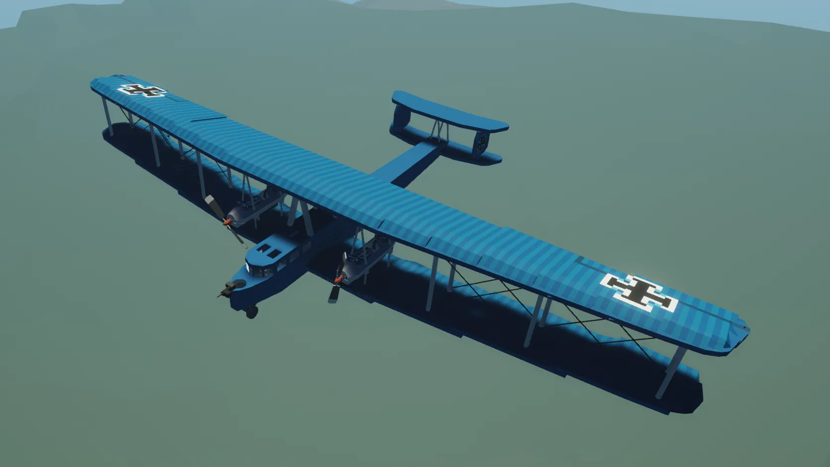 My latest build based on the Zeppelin-Staaken R.VI from the First World War. It was the largest aircraft to be produced in any quantity during World War I with a massive wingspan of 42 metres, only 1 metre shorter than the B-29 of the Second World War. It had four engines in a push-pull configuration with a 10 men crew consisting of one commander, two pilots, two copilots, two radio operators, a fuel attendant and two mechanics in the engine nacelles.