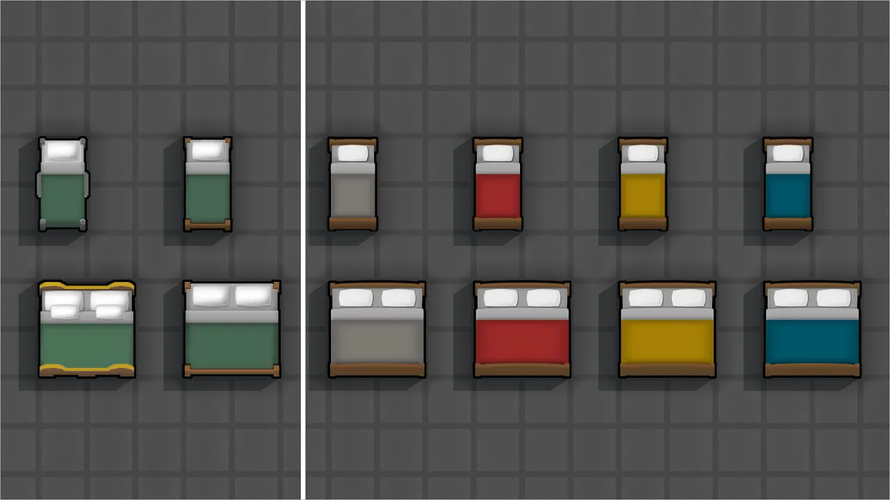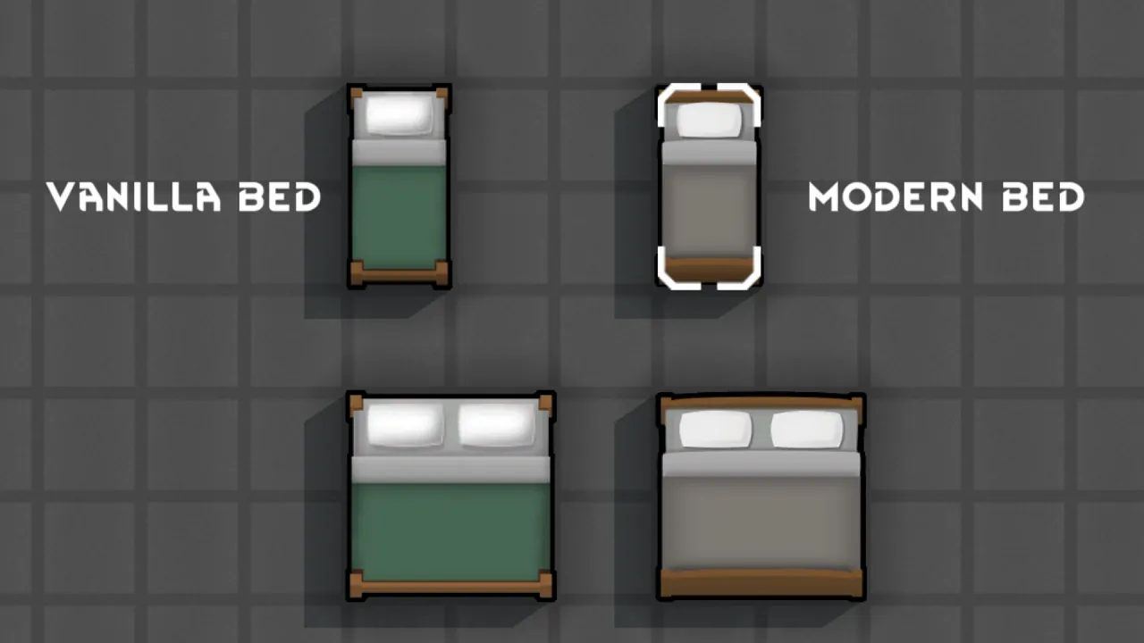The modern bed texture was created by [b]Si-Cafe[/b] to match Vanilla Rimworld as much as I can.