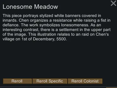 Hate that the art for your new masterwork has nothing to do with your colony? Reroll your art!