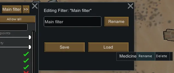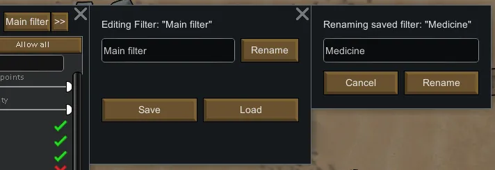 [*] [url=https://steamcommunity.com/sharedfiles/filedetails/?id=1541305730]Material Filter[/url]: Button display is fully patched to allow editing of material filters for this mod's extra filters, as well as to ensure both mods' buttons are fully visible and windows do not overlap.