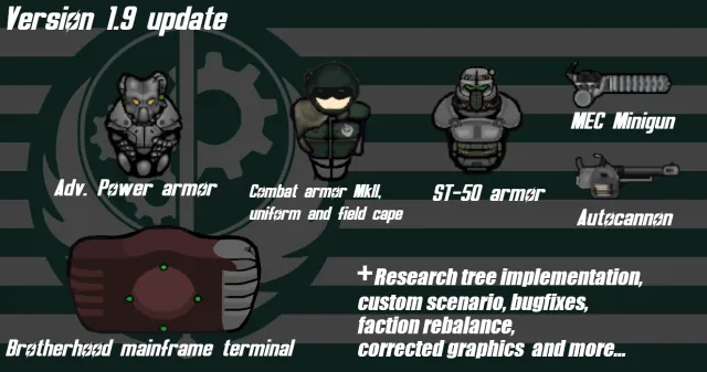 Bring some order back to the rimworlds with the Brotherhood of Steel. Includes a new faction and items.
