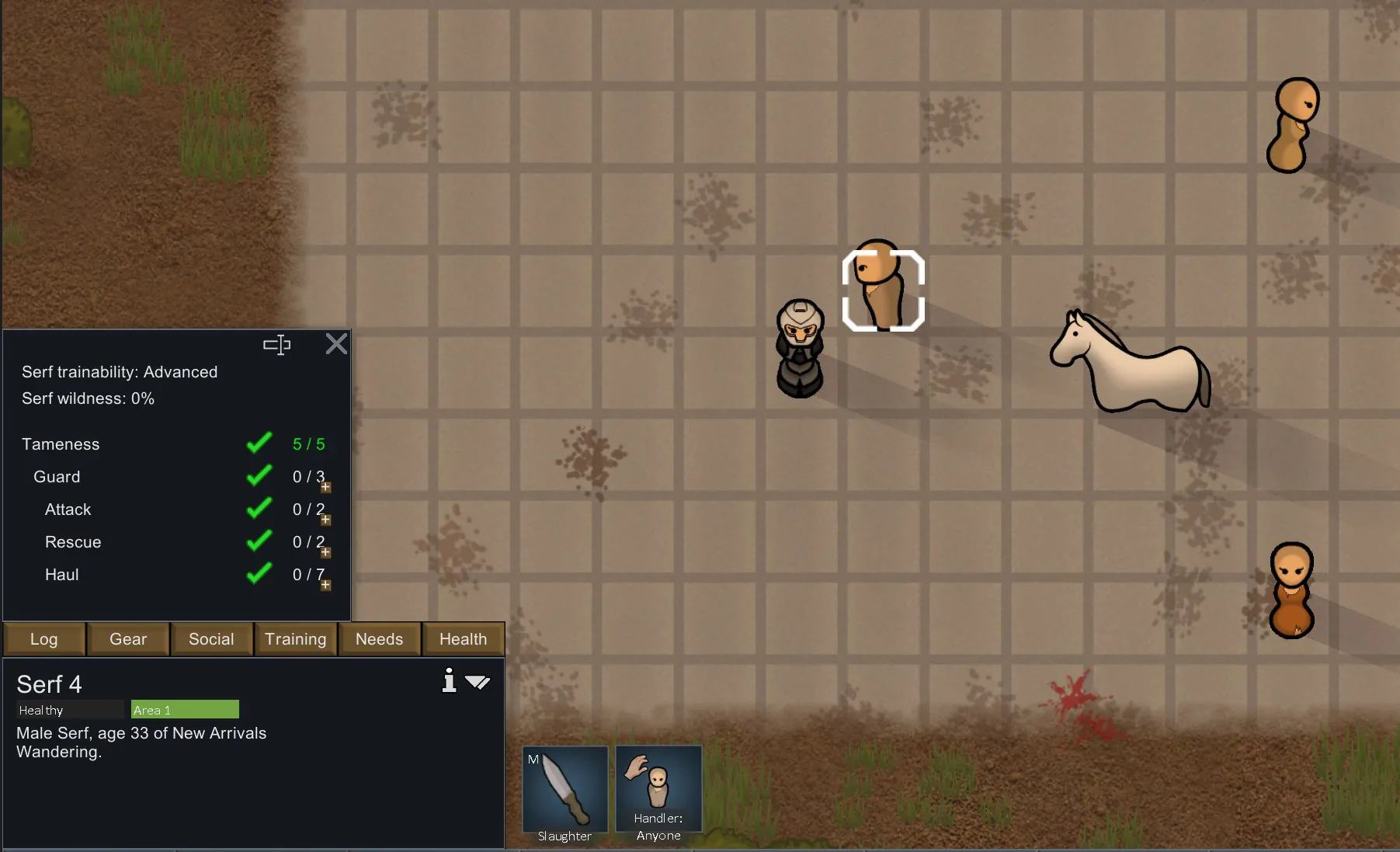 Place apparel tagged with [b]Serf[/b] or [b]Millita[/b] in the stockpile for your serf and Milita to equip them. Millita will pick up weapons that seem effective for killing. You can use surgery to remove their equipped weapon.