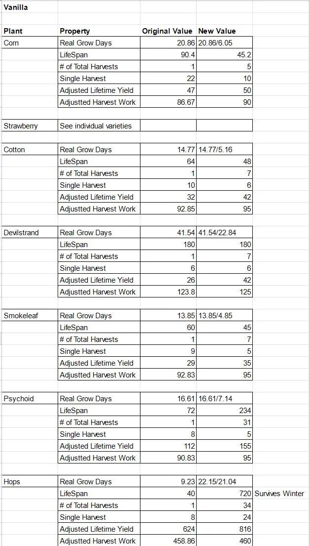 Additionally, when you have multiple plant mods added and they add the same plant, (ex: both mods add pumpkins) they will now have similar values, if not the same.