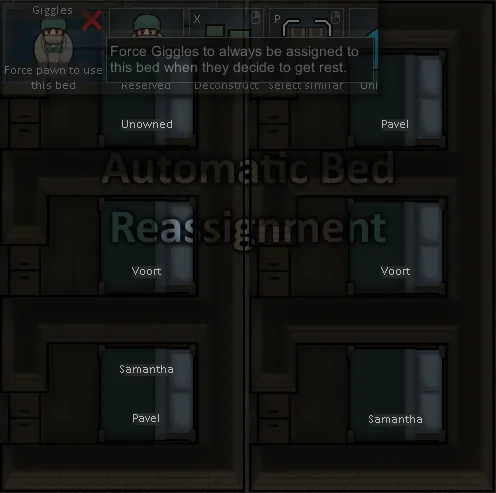 [b]MAKE SURE[/b] you use the above gizmo if you're manually assigning beds to specific pawns, otherwise it can be overwritten by automatic reassignment.