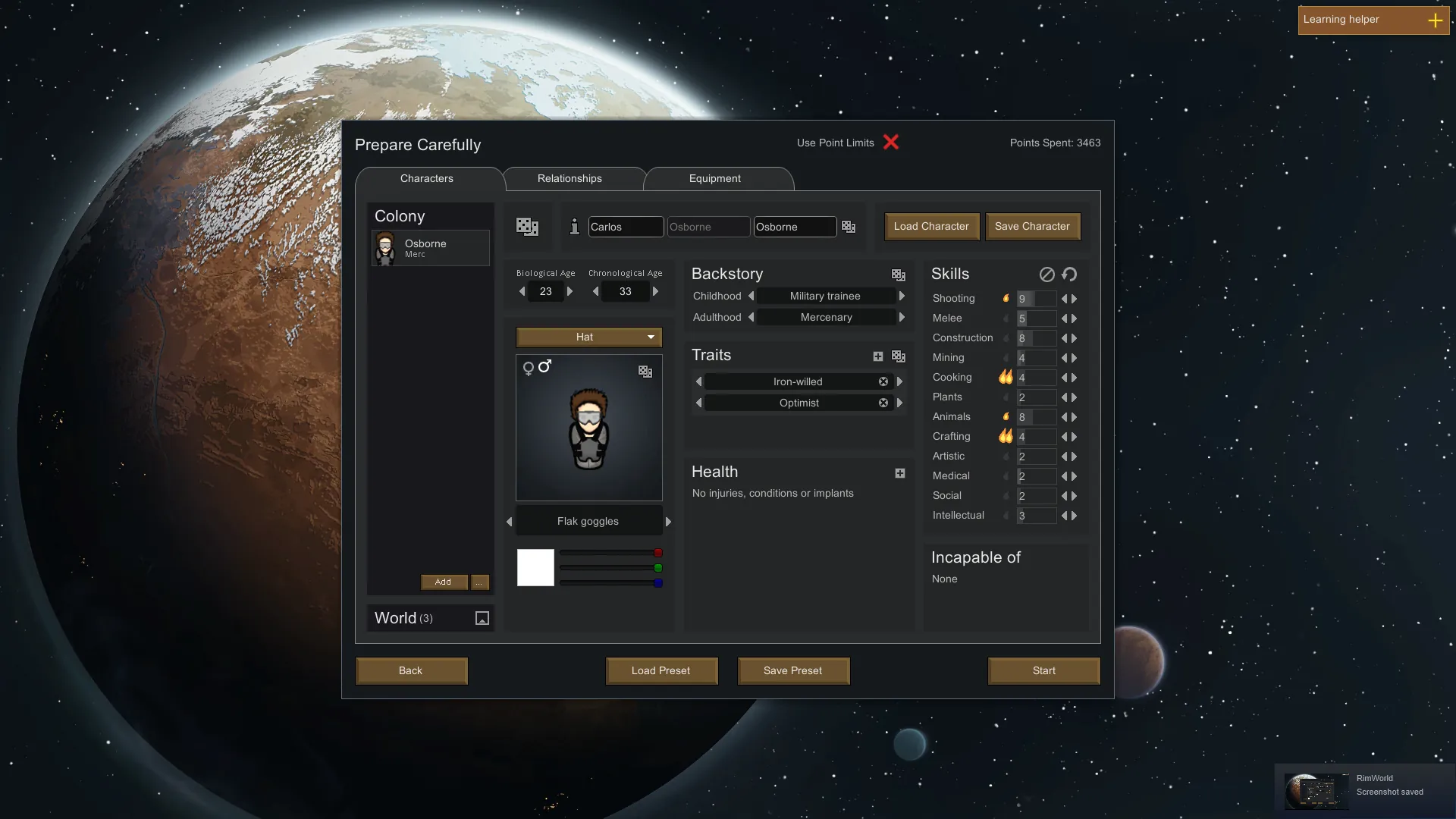While piloting a ship orbiting Rimworld, chunks of random space junk traveling at fast speeds collide with your ship, hitting various external components. Immediately, your cockpit lights up, smoke starts billowing out of your engine. You try to steer but your ship is rapidly losing altitude. Faced with this option, you decided to try and crash land your ship. You manage to eject from the spacecraft after managing to fly the ship down to the planets surface. You have very little supplies to survive. A few components, a few first aid packs, and a few basic survival meals. And your trusty personal defense sidearm. Will you be able to escape the planet one day? Or will you just evolve into one of the planets other inhabitants.