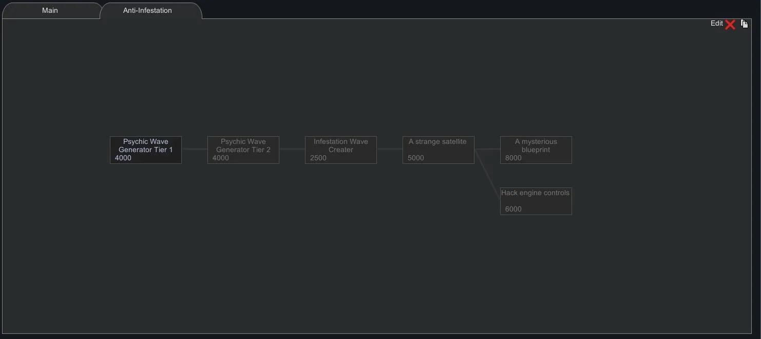 "One evening, your researcher detected a strange signal at the comps console. After some research it turned out to be satellite in orbit! Once you hacked into it, the satellite opened a telnet connection. After some hard work you found out it was a giant psychic wave generator and turned out to do the same thing you were researching all the time. Creating infestations..."