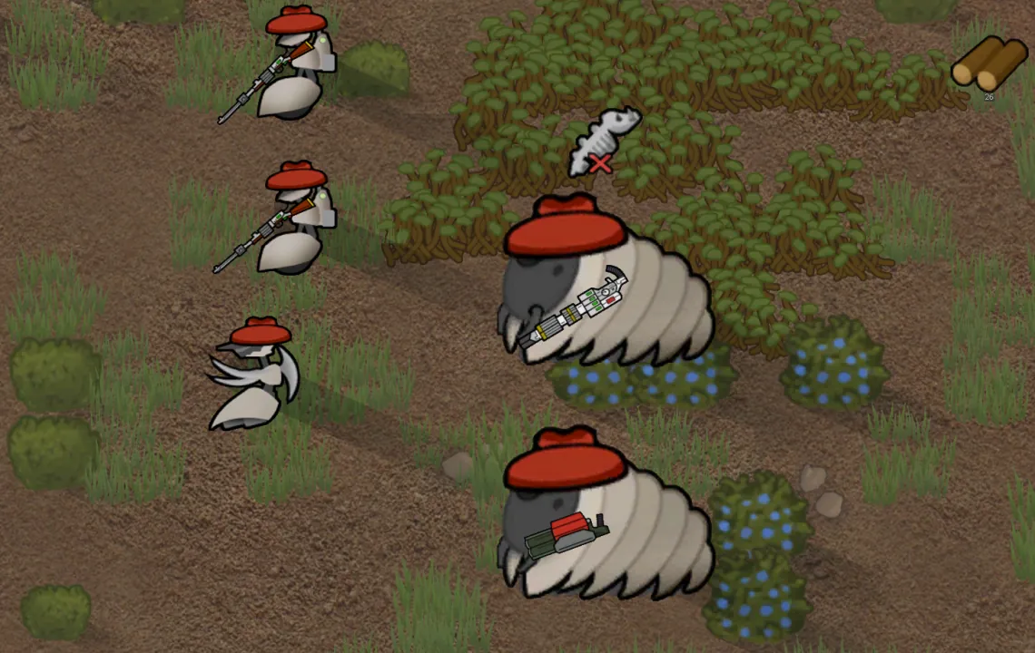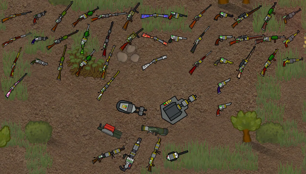 - reskined grenades, launchers, mechanoid weapons and turrets to match this mods art style (and functionality)