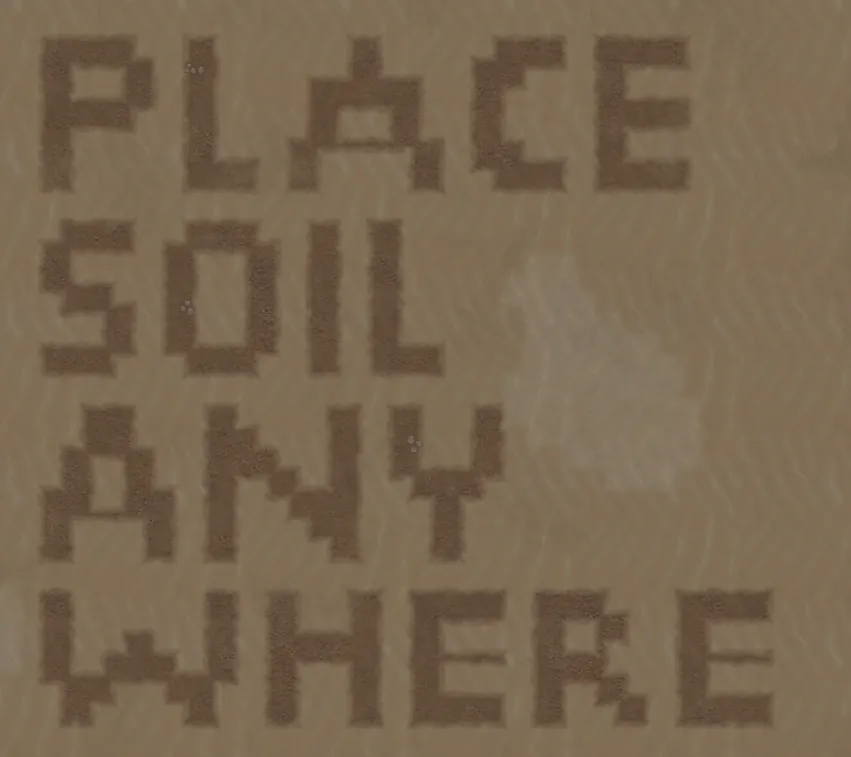With this mod with the right research you can lay down an area of soil on surfaces such as stone, sand and even rich soil (if you want that for some reason). You cant place soil on water or mud though. Created as a commission
