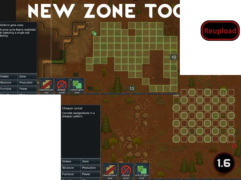 Uniform grow tool: Selects a grow zone in an area matching the fertility of the initially selected tile. Also available in [url=https://steamcommunity.com/sharedfiles/filedetails/?id=1339135272]TD Enhancement Pack[/url]