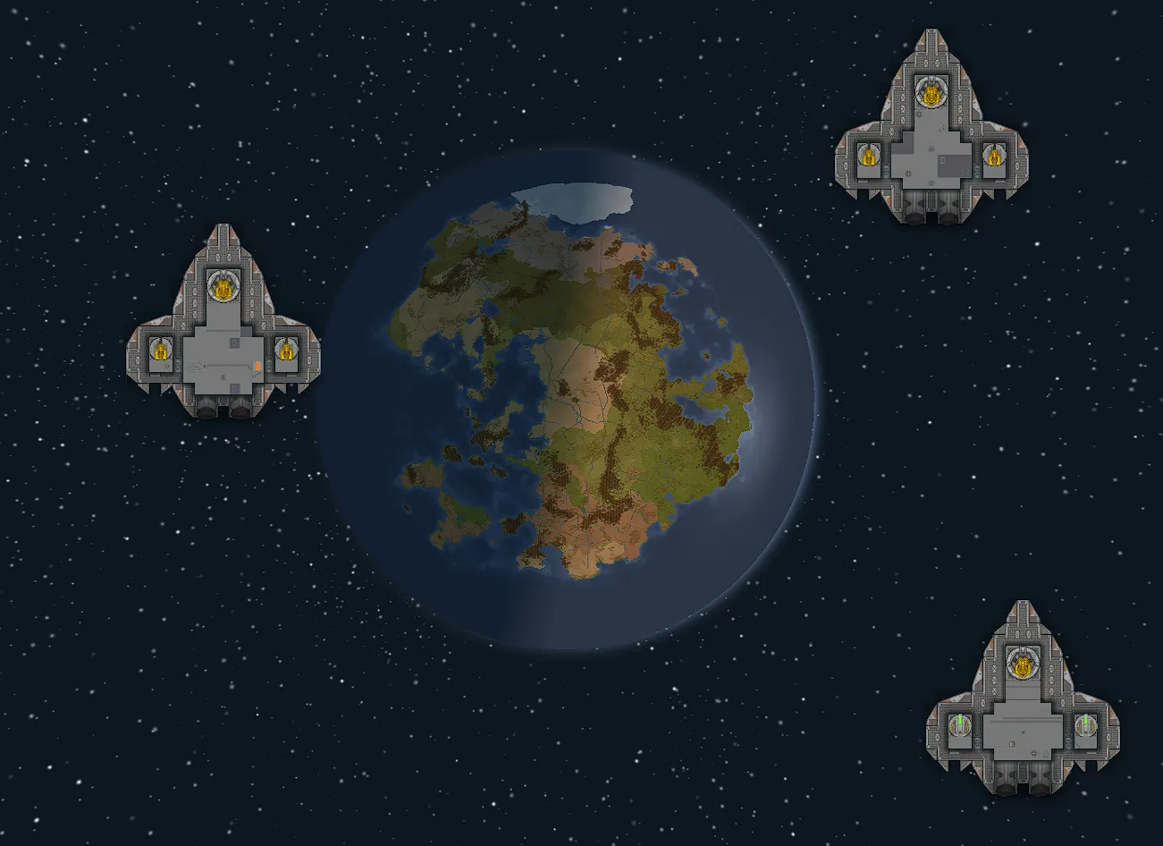 Deserter ships are universally combat-oriented and crewed by professionals. Expect rugged, utilitarian designs escorted by combat drones and fighters that will engage with the tenacity of cornered animals.