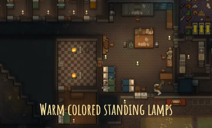 Overrides the light of the standard standing lamp to match the color of torch lamps for a warm and cozy feel.