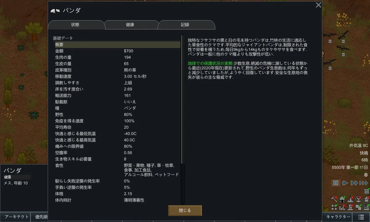 パンダやセンザンコウから、すでに絶滅したフクロオオカミやクアッガまで、RimWorldで動物保護を手伝うことができます。これらの動物は、私たちの世界と同じように絶滅の危機に瀕しており、マップには自然に発生しません。その代わり、彼らは稀なイベント「絶滅危惧種動物の移動」によってやって来て、飼いならして繁殖させるチャンスを与えてくれます。彼らを「野生に戻す」仕事は、このModによって追加された新しいオプションです。この行為であなたは他の派閥との友好関係を改善することができます!