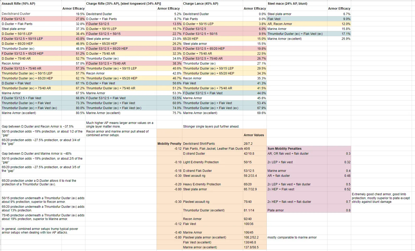 The calculator I used to help balance this mod is too good not to be shared. [url=https%3A%2F%2Fdocs.google.com%2Fspreadsheets%2Fd%2F1P92RfwiYK7pctjCAOgYoyRJUYwHBX9We1XcBceU-Hc4%2Fedit%3Fusp%3Dsharing%5B%2Furl]Here it is![/url][docs.google.com] First, File->Make a copy to get a version of the calculator you can personally edit. Input your weapon and armor data into the blue boxes, and your results will appear in the graphs and green boxes.