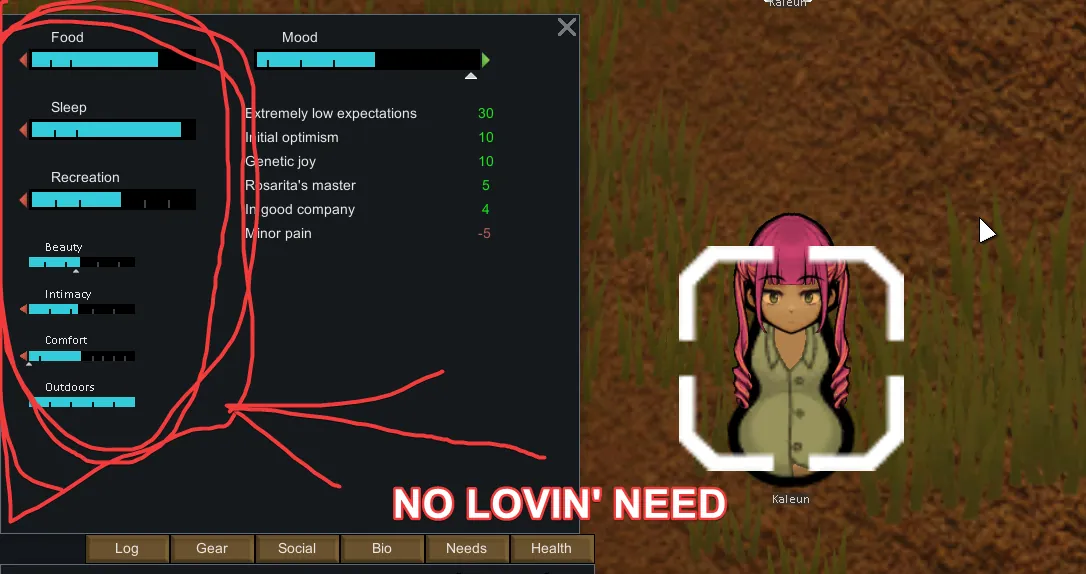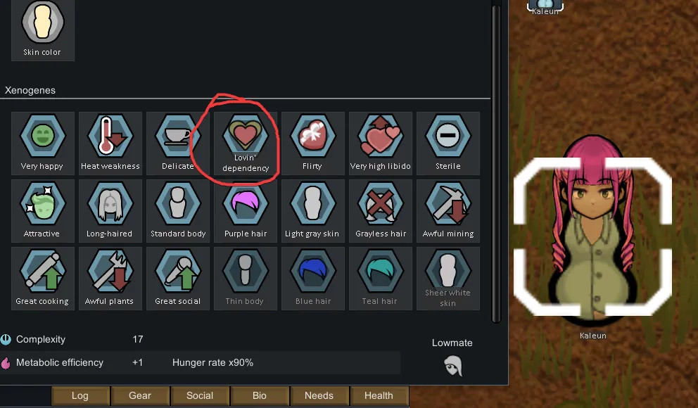 Keep in mind that this doesn't remove the "Lovin Dependency" hediff in the health tab, it ONLY removes the "Lovin'" need, therefore this hediff doesn't have any effect on gameplay [in my experience]. This is intended to be a crude patch for mods that alter 'Lovin and the issues that stem from altering this mechanic. [IYKYK]. This can also end up making the game sort of easy since you won't have to worry about your lowmates or other pawns with this gene leaving your colony anymore. Does this make the lovin' dependency gene a free 3 metabolic points with this mod installed? Yes. Am I going to solve that? No.