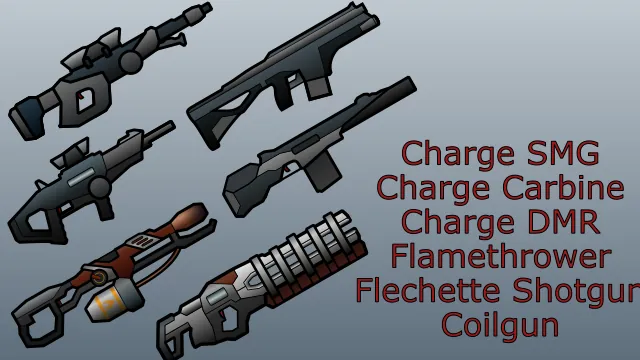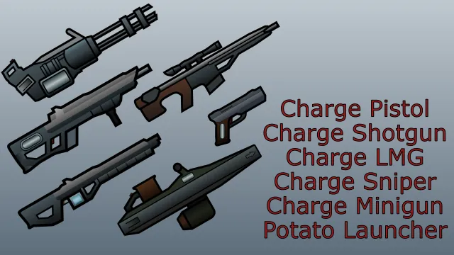 Adds craftable weaponry to your colonists extra fun time on this desolate Rimworld! Includes: Flechette Shotgun, Charge Pistol, Charge SMG, Charge Carbine, Charge Shotgun, Charge LMG, Charge DMR, Charge Sniper, Charge Minigun, Potato Launcher, Flamethrower, Coilgun, Taser Pistol, Taser Rifle and the Hyperboreal Rifle