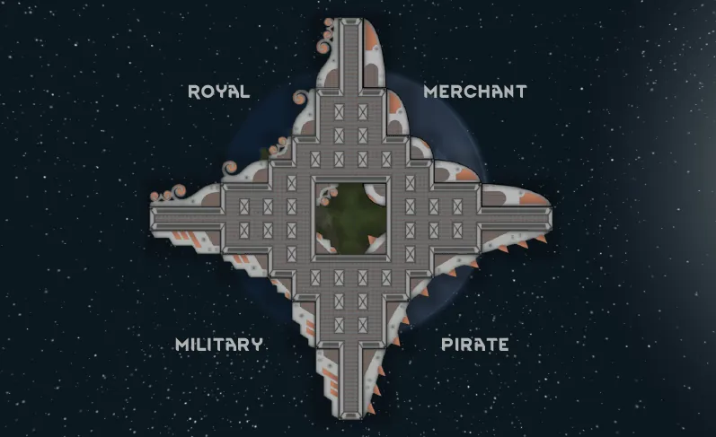 A simple mod that adds four more hull corner styles; Royal, Merchant, Military and Pirate. Cost and work to build are the same as the original hull corners. Original hull corners are not removed.