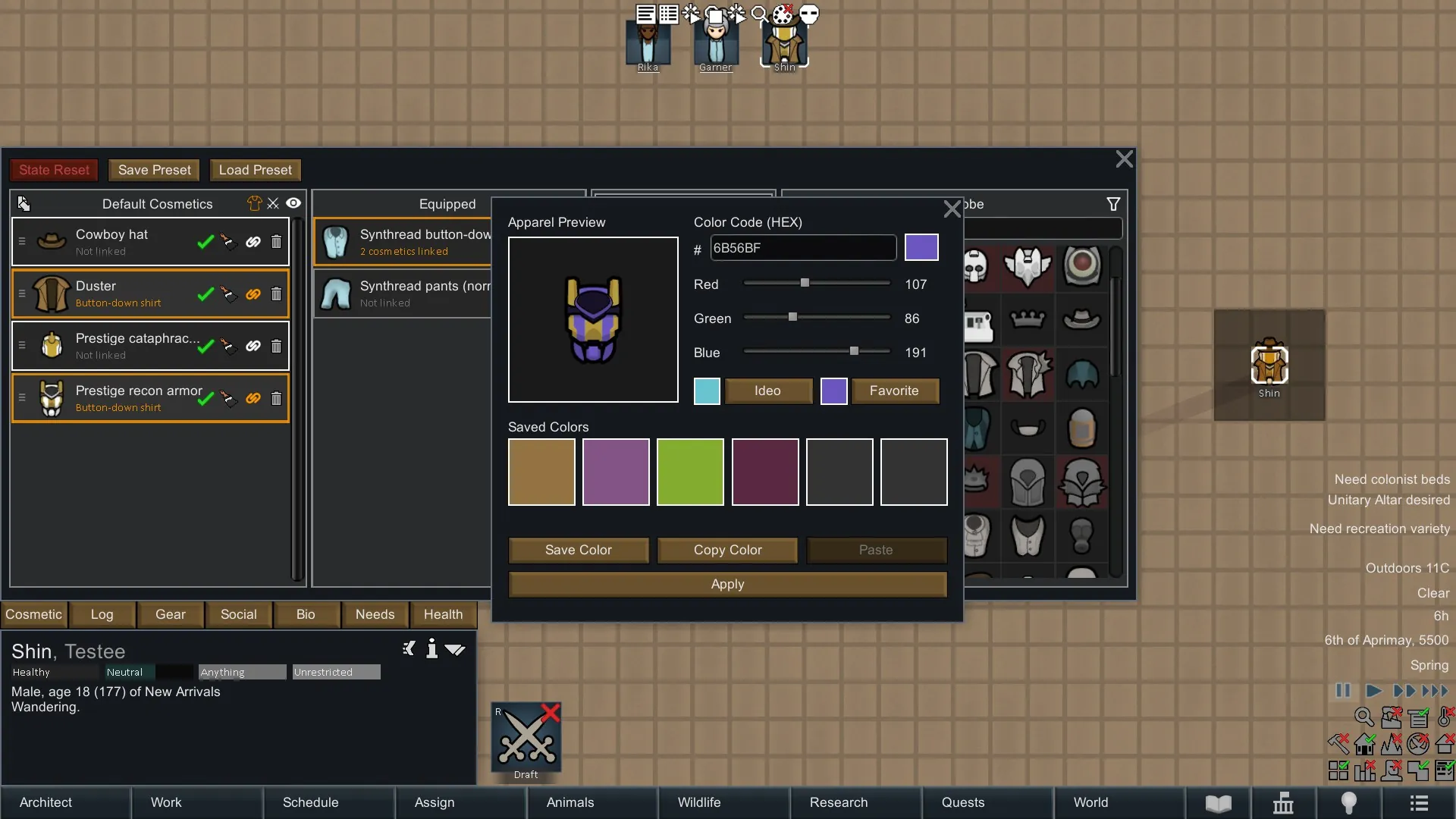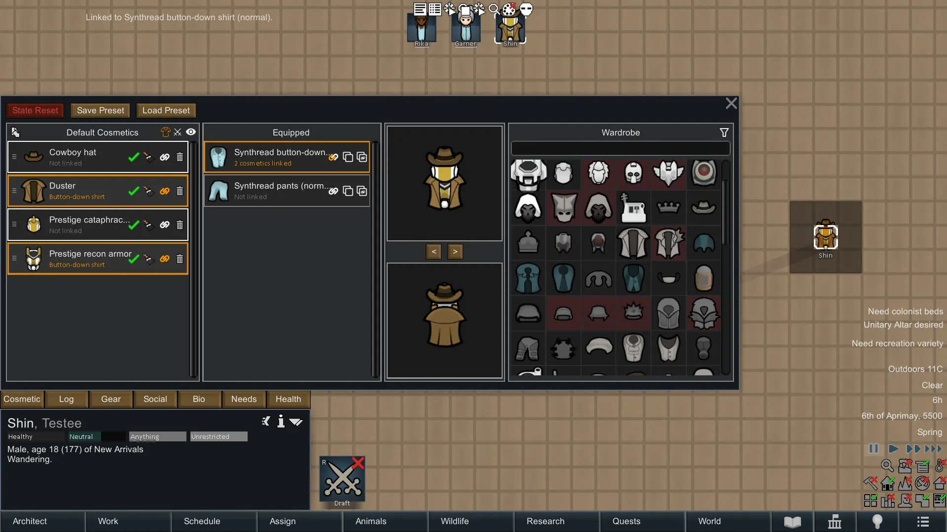[*] Add desired outfits to the cosmetic layer by clicking them in the right panel