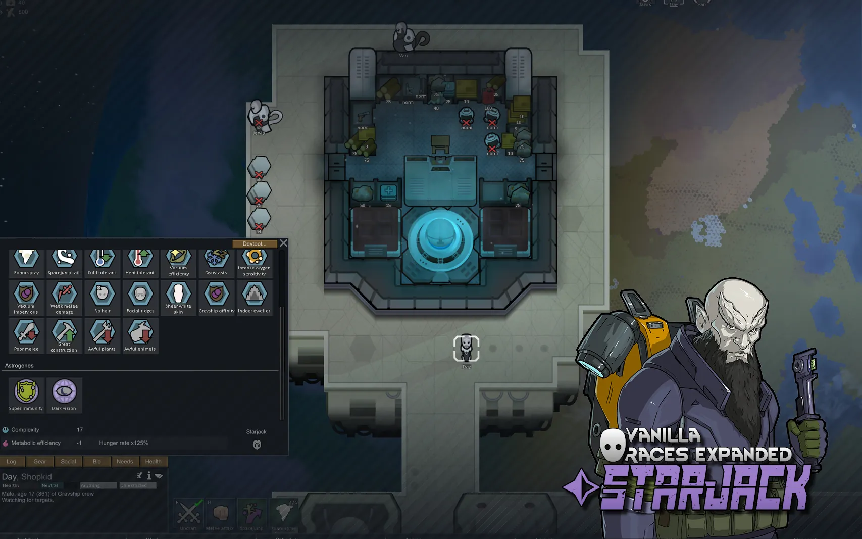 In Vanilla Races Expanded – Starjack, we're expanding the Starjack xenotype into a fully space-adapted species. Originally built for life in zero gravity, Starjacks now come with new genes, unique abilities, and a deeper identity as orbital specialists who struggle on planetary surfaces.