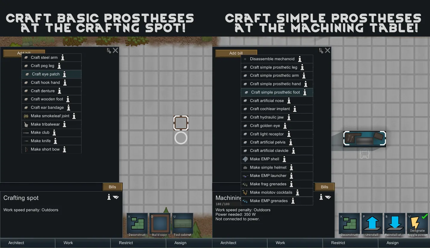 Removes the prosthetics table. Makes prosthetics craftable at the machining table and the fabrication bench.