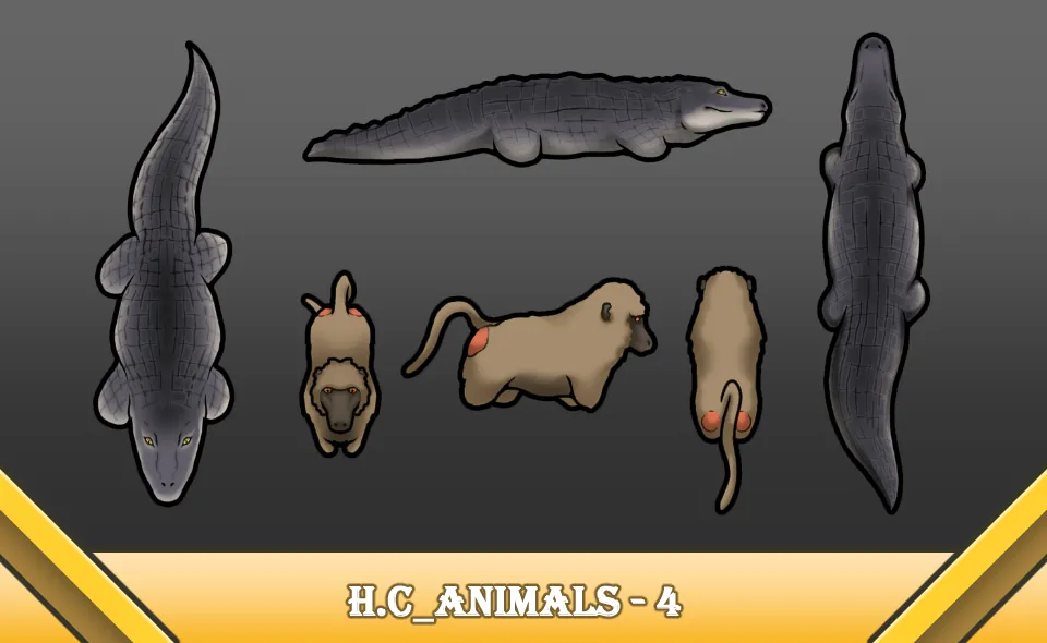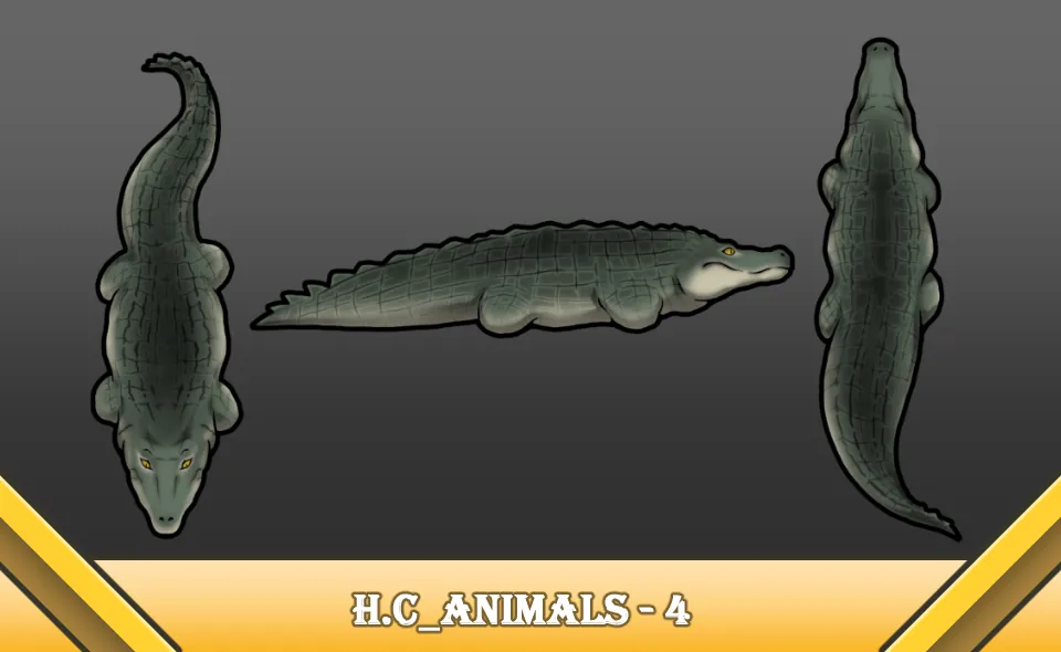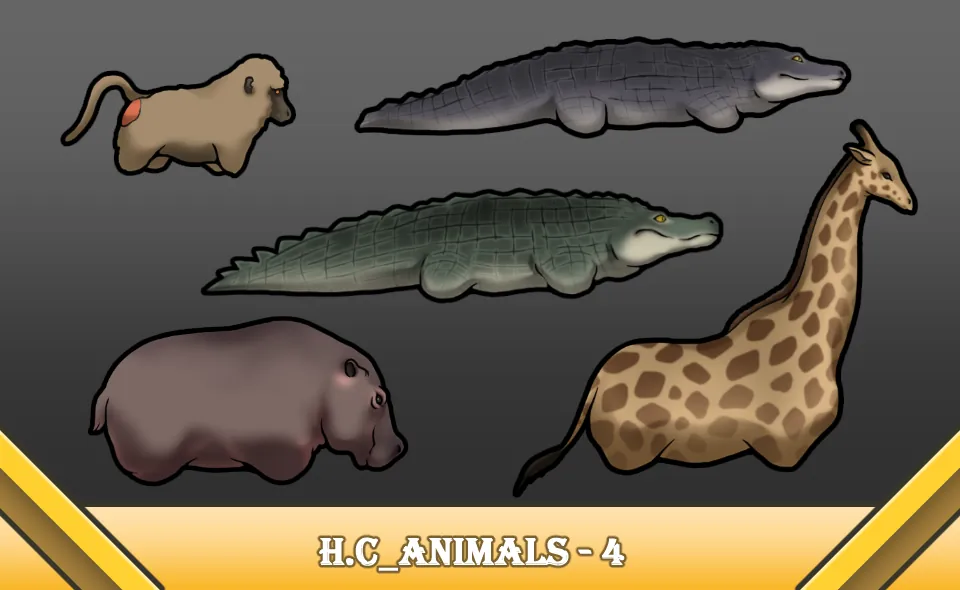 H.C_Animal_pack_4. Baboon, Giraffe, Alligator, Crocodale, Hippo. 5 Animals.