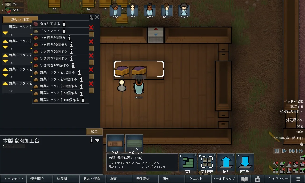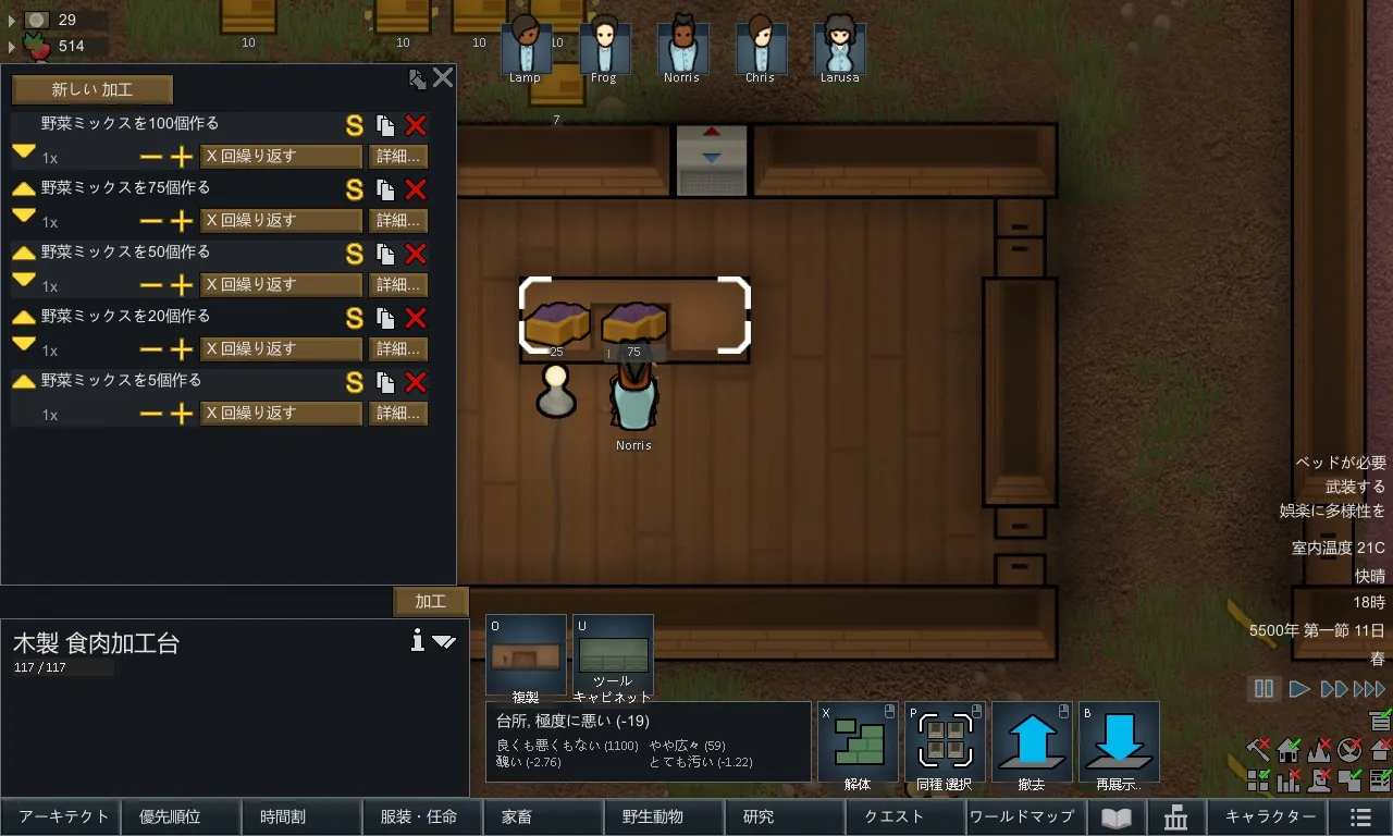 あなたの料理人は食肉加工台で野菜ミックスを生産する事が可能です。