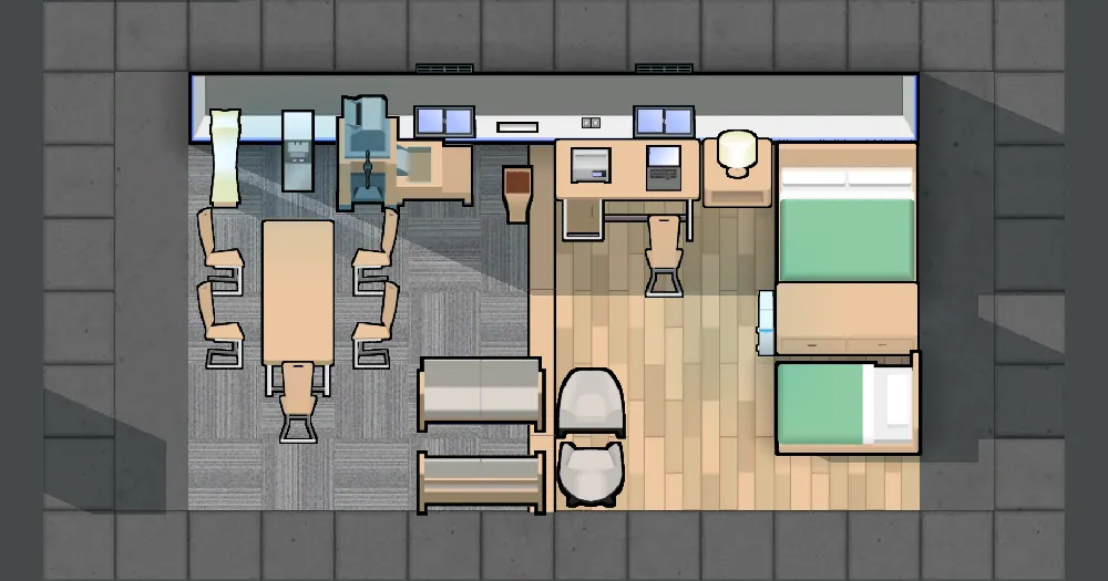 - Decorations like light switches, trash bins, water dispensers, etc.