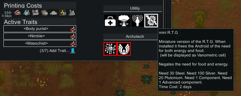 (Rimatomics) Replace Vanometric cell with R.T.G (plutonium) for Androids