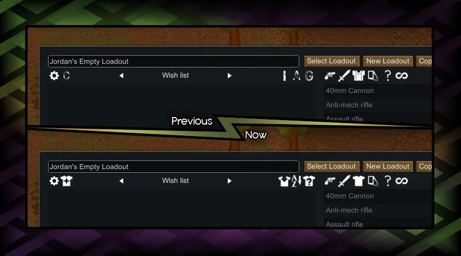- Some buttons in loadout edit screen