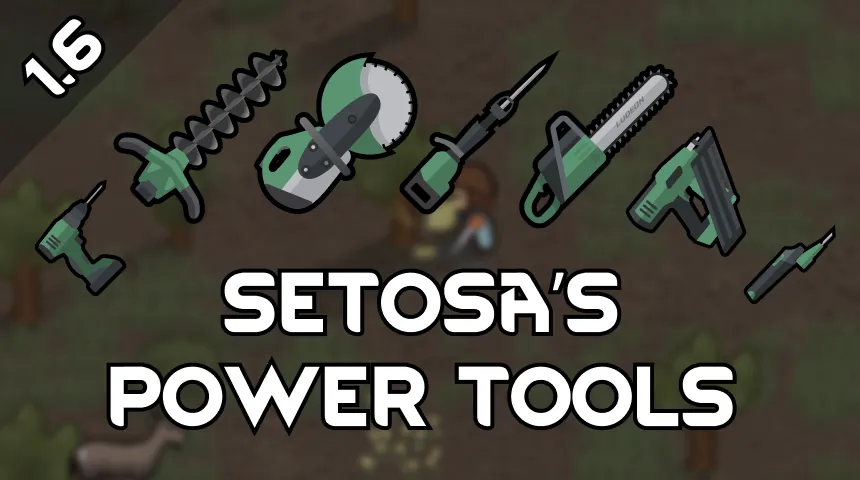 This mod adds several new power tools to the game. These are industrial level items and can be unlocked via Machining research and then built at the Machining Table. They also double as weapons.