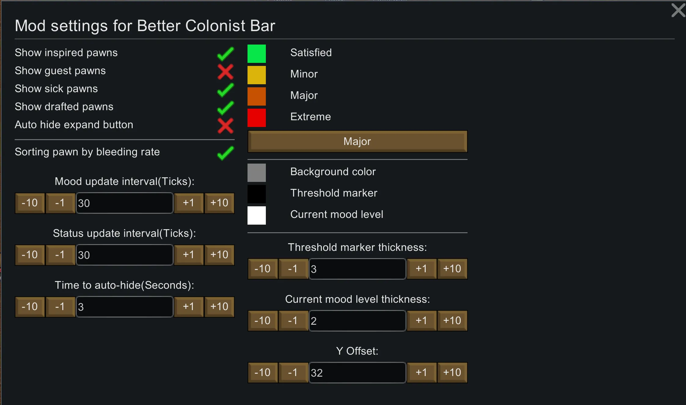 - It runs almost as fast as the vanilla colonist bar when expanded and superior in performance when collapsed.