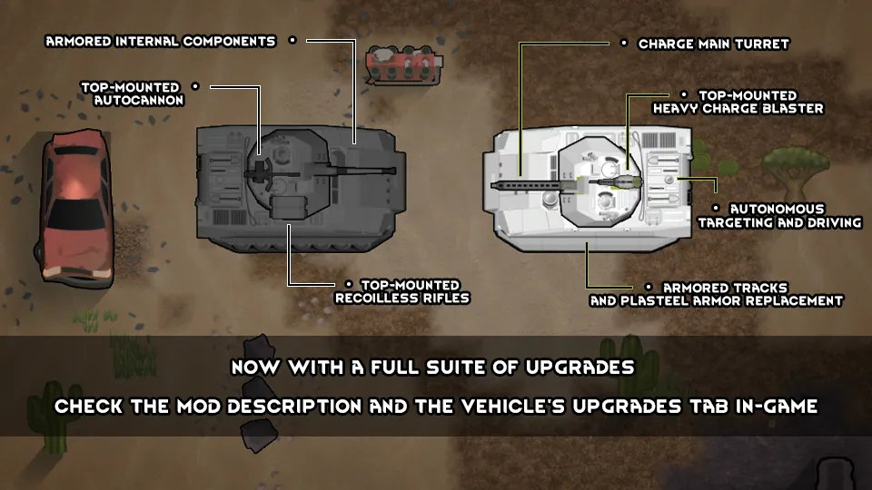 - Top-mounted Vektor GA-1 SD-ROW autocannon, a pair of Carl Gustaf recoilless rifles (now with the Tandem charge ammo type with this mod installed) and heavy charge blaster SD-ROW