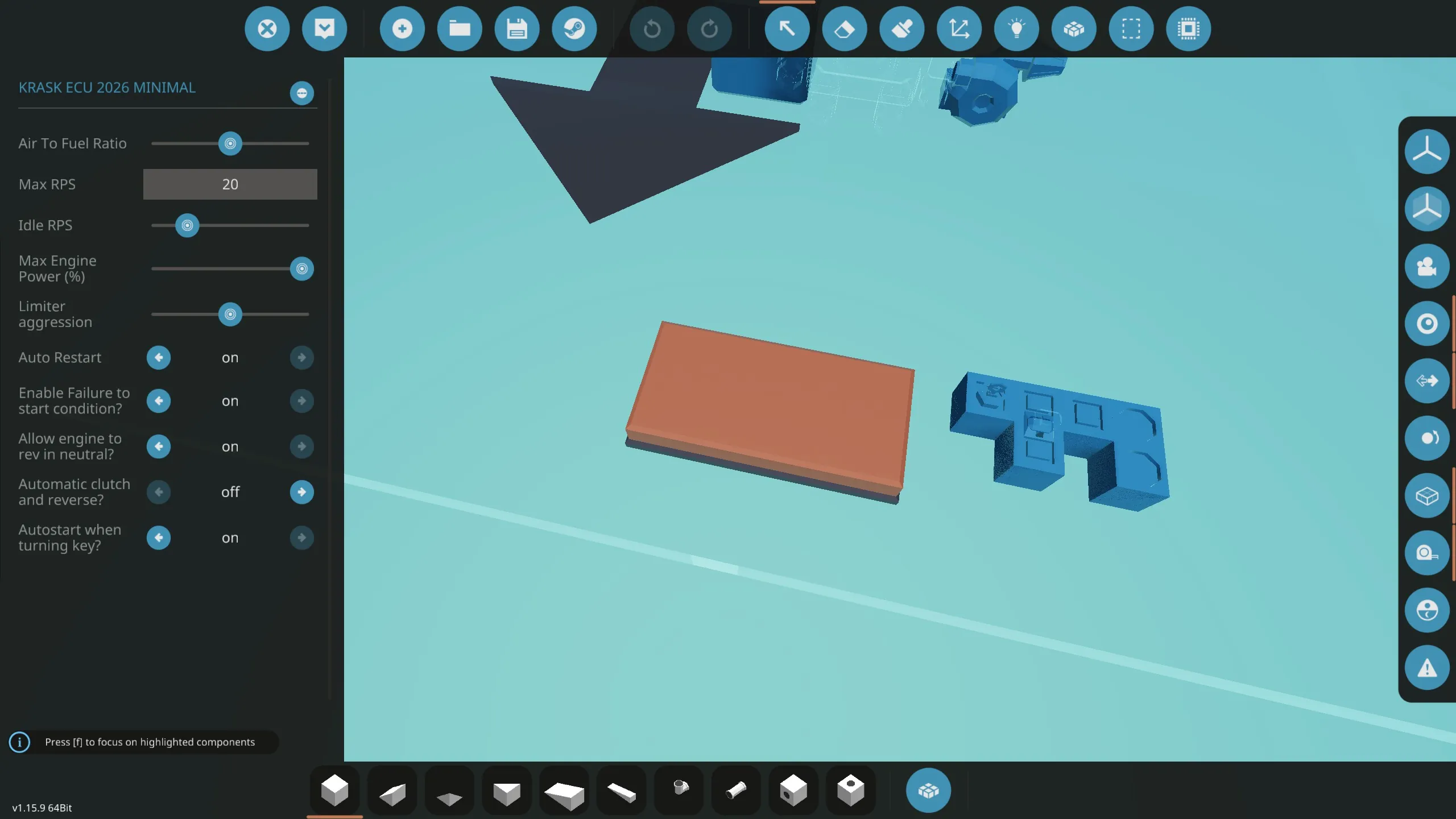 [*] Rev limiter: Its set to 20, you can set to whatever you want. The engine will not rev unless the engine is clutched in. This can be turned off.