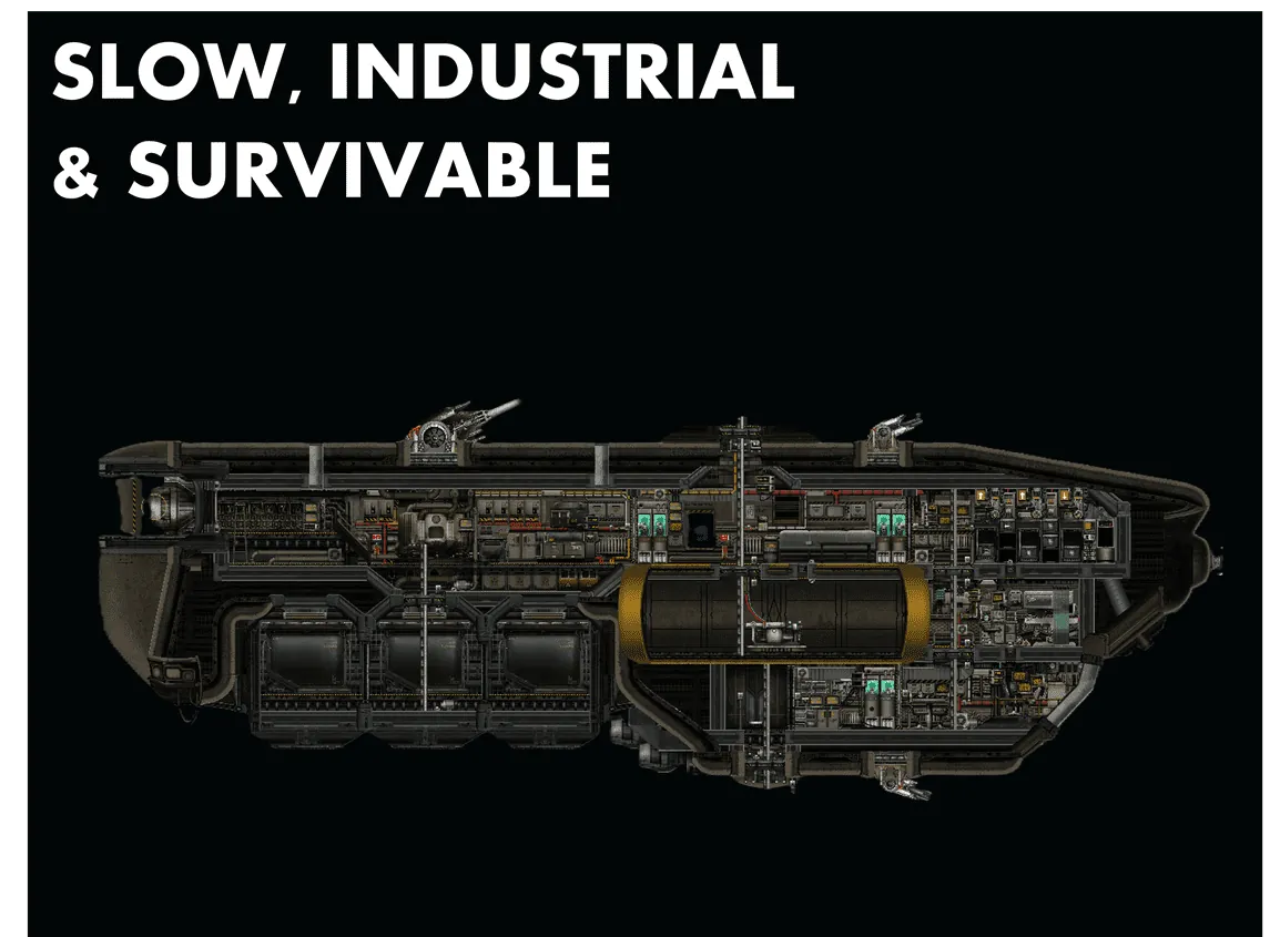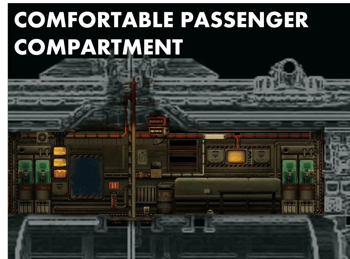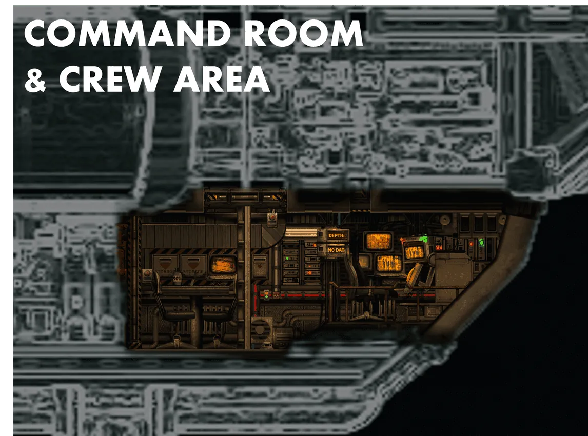 Internally, the submarine is built around function. A generous 36-crate cargo hold makes it a strong choice for trade-focused crews, while full fabrication facilities and a dedicated medbay enable extended operations far from station support. Its compartmentalized, industrial layout can be slower to traverse, but it is resilient under pressure and easy to maintain. The Cliodhna excels as a steady, survival-oriented workhorse and is ideal for crews who prioritise endurance, logistics, and calculated risk over firepower.