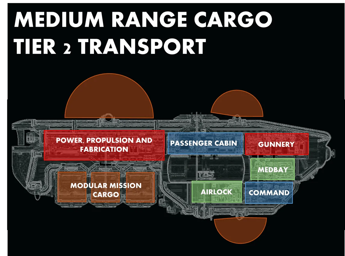 Though not designed for frontline combat, the Cliodhna carries enough armament to survive the journey. Two light weapon mounts provide coverage against smaller threats, while a dorsal flak cannon offers limited protection against swarms. A decoy launcher adds a critical layer of defence, allowing crews to disengage from larger predators rather than confront them head-on. The vessel rewards cautious navigation and smart resource use rather than aggression.