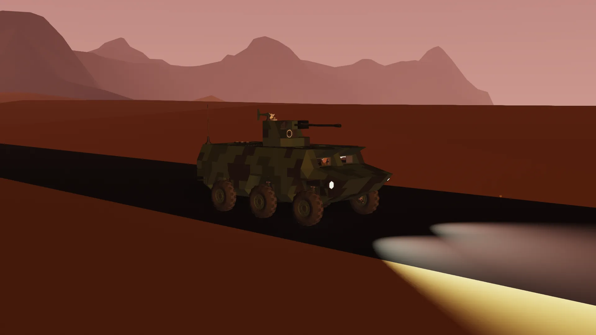 The MV-14 is an APC designed to transport troop on dangerous battlefied and protect them from potential attack using its light autocannon turret. It has good stability and mobility to pass through complex terrain.