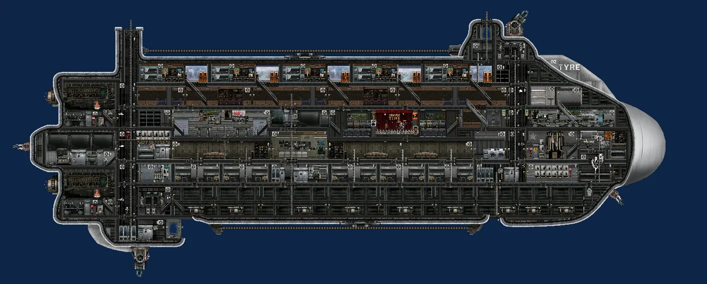 Built during the golden age of Europan colonization immediately before Earth went dark, the Jupiter class of Cruise Submarines were some of the largest mass personnal transit vessels ever constructed on the moon. As conditions on Europa become increasingly unstable, a series of disastrous incidents have left the Tyre the only survivor of the class, now put on the open market in a attempt by the shipping line to recoup several hundred thousand marks of losses.
