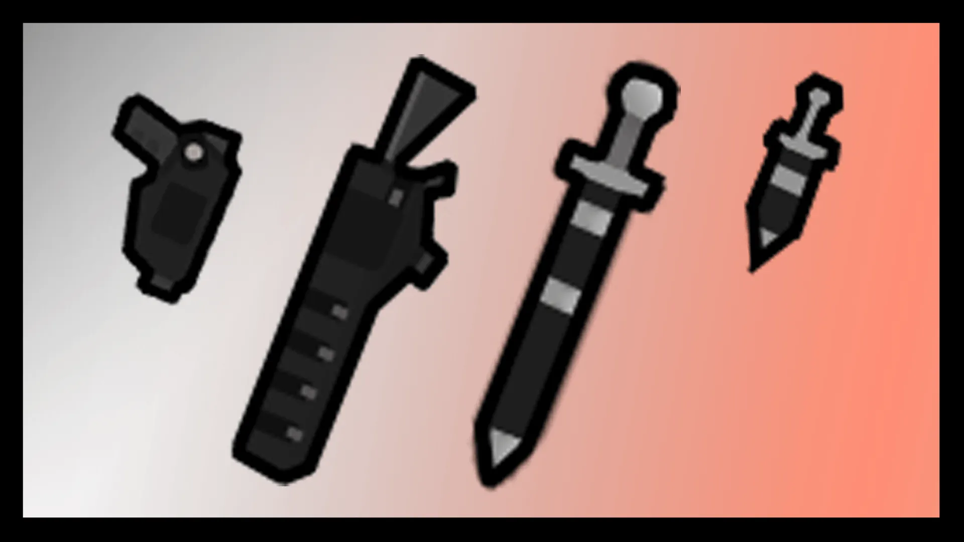 As for stats, the knife/sword scabbards decrease melee cooldown time while the gun holsters decrease ranged cooldown time.