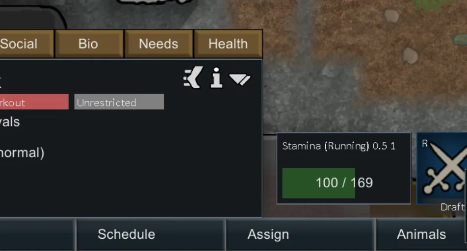- A stamina system for all things living. Described by douchebag magazine as a Need for Speed turbo system but in RW. Which allows both animals and human pawns for run/walk/breath since predator; like in nature, can only run so long at very high speed.