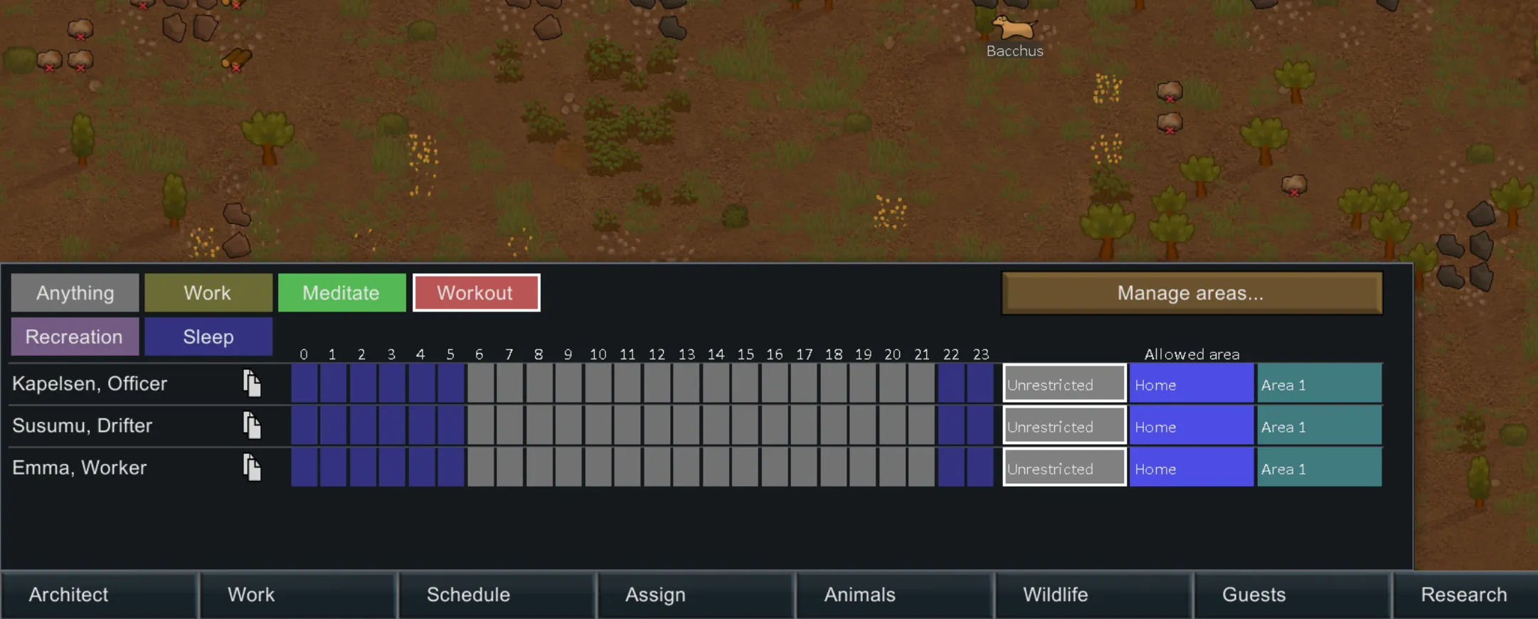 And i quote: "I rowed for 10 mins and my back is sored. I need more gym in RimWorld."