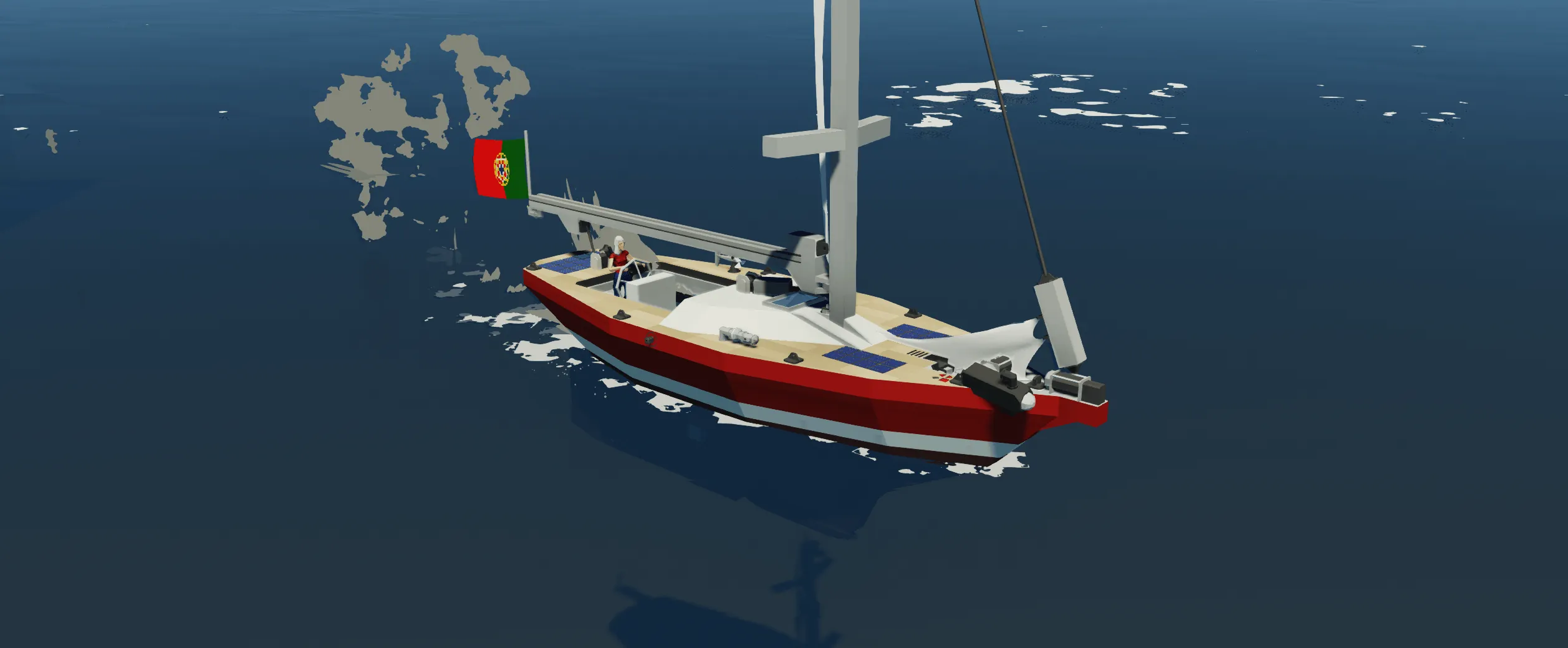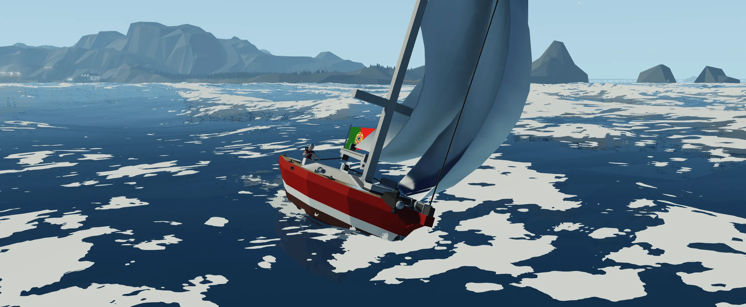 Use the buttons infront of the helm to control both the main sails and the Genoa. You can also find on this panel the controls for the heading holder and for the engine, every controller is reachable in the helm position